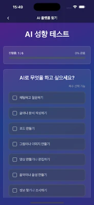 AI Finder is a smart app that recommends the optimal AI platform for you with just six simple questions.