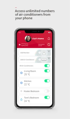 You can link the AC operation to your location. When a user is arriving and enters the pre-set perimeter, the air conditioner automatically turns on to create a welcoming atmosphere. When users exit the perimeter, air conditioners turn off or adopt an energy-saving temperature.