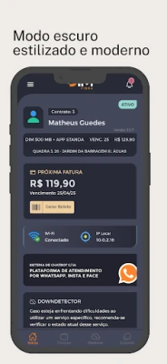Conheça o aplicativo da Dim Fibra, a ferramenta ideal para aprimorar sua experiência conosco. Com ele, você se conecta a diversos serviços de forma prática e segura, a qualquer hora e em qualquer lugar. Confira as funcionalidades disponíveis: consulte débitos e faturas, visualize o histórico de faturas, acesse informações de rede, abra chamados de suporte, faça testes de velocidade de conexão, solicite promessa de pagamento (desbloqueio), receba notificações Push com cobranças e avisos, e veja gráficos de consumo. Com o app Dim Fibra, tenha todas essas facilidades na palma da sua mão. Aproveite!