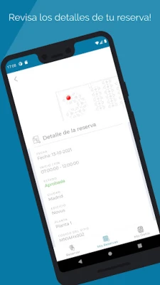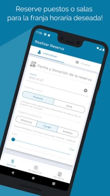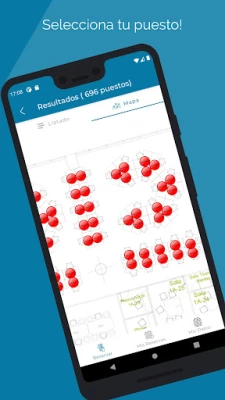 Podrá buscar y realizar reservas individuales o grupales en función de los permisos asignados por su administrador, filtrando por edificios, plantas o zonas determinadas desde el área “Reservar”.