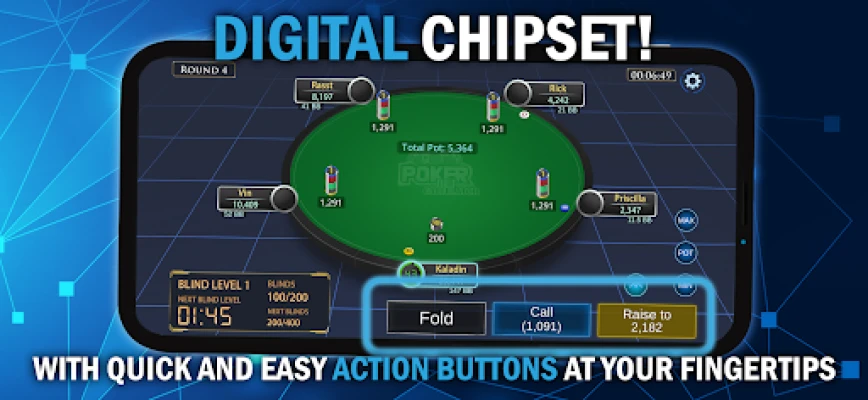 Never worry about keeping track of bets and pots during a Texas Hold'em poker tournament again with Poker Chip Counter. This app provides a digital chipset with all denominations, allowing players to easily play face-to-face even when physical chips are not available.