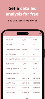Detailed Analysis Data: Use graphs to compare data like the number of messages exchanged between you and the other person. This helps you understand each other's communication style objectively, making it easier to understand your friend better. You can also view detailed data in a table format.