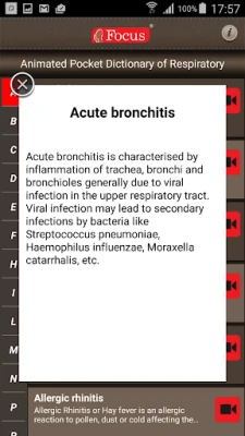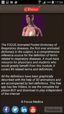 The FOCUS Animated Pocket Dictionary of Respiratory diseases, the first ever animated dictionary in the subject, is a comprehensive reference source for the definition of terms related to respiratory diseases. A must-have resource for physicians and students who would greatly benefit from this module, it covers 89 related terms and definitions.