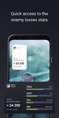 Keep track of the russian army losses with a handy widget on your home screen. Get the info about the personnel, tanks, aircraft, and other military equipment losses on one screen.