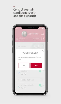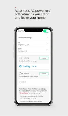 You can link the AC operation to your location. When a user is arriving and enters the pre-set perimeter, the air conditioner automatically turns on to create a welcoming atmosphere. When users exit the perimeter, air conditioners turn off or adopt an energy-saving temperature.