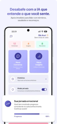 Receba análises emocionais: Entenda os sentimentos por trás das suas mensagens. Identifique padrões emocionais e veja com mais clareza o que você viveu.