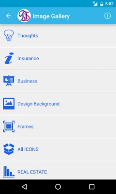 In Image Gallery you have multi-type of categories images, Icons, Greetings, Brochures, and Templates, and Backgrounds to make your own branding images and images for occasions.