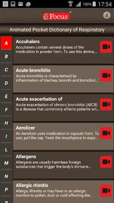 The FOCUS Animated Pocket Dictionary of Respiratory diseases, the first ever animated dictionary in the subject, is a comprehensive reference source for the definition of terms related to respiratory diseases. A must-have resource for physicians and students who would greatly benefit from this module, it covers 89 related terms and definitions.