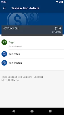 Add Tags, Notes, Images & Geo-Information: By enhancing transactions with custom tags, notes or photos of a receipt or check, you have the ability to stay organized and find exactly what you’re looking for when searching through your finances.