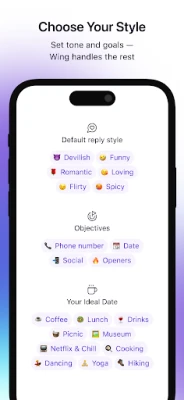 Forget one-size-fits-all responses. Wing learns from you, adapting to your tone, humor, and preferences, crafting replies that sound just like you - only better. The more you interact with Wing dating assistant app, the more personalized and effective your conversations become. Getting AI dating help has never been easier.